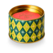 A holiday themed tin with bold, gift wrapped patterns and a gold metallic interior for a touch of holiday shine.